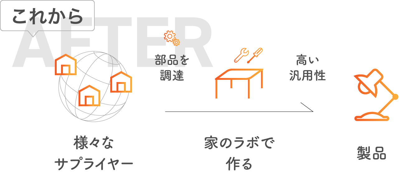 この開発スキームであれば、柔軟性・汎用性も高く各自が自由に好きな製品を工作することが可能になります。そこで開発された優れた製品の仕様を惜しみなく公開する連鎖が循環すれば技術開発のスピードは従来と比べ物にならない速度で発展していくでしょう。